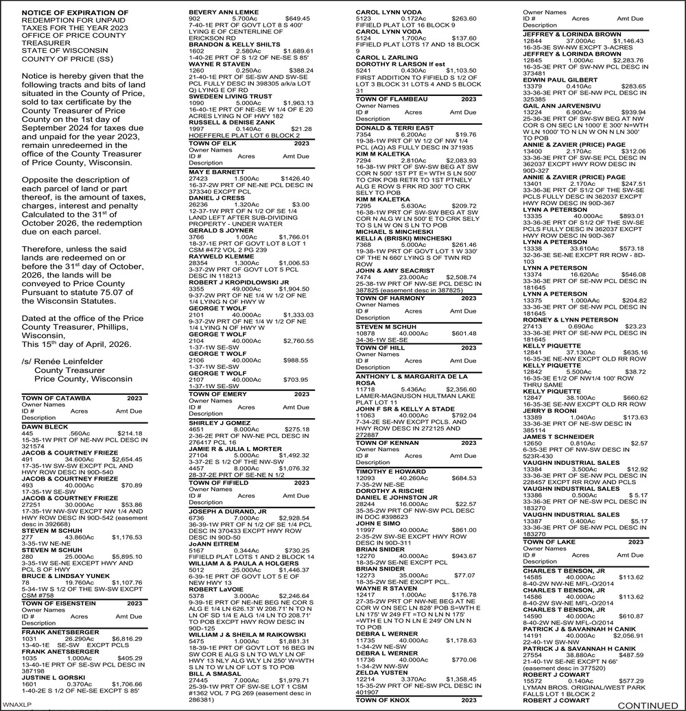 Apr 23, 2026. Price County Public Notice Ads from Price County Review