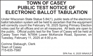Feb 06, 2025. Town Of Casey Public Notice Ads from Spooner Advocate