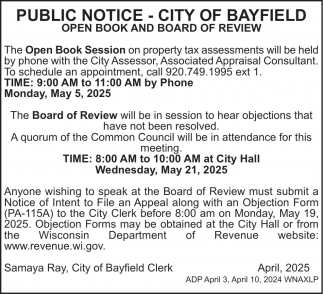 Apr 02, 2025. City of Bayfield Public Notice Ads from Ashland Daily Press