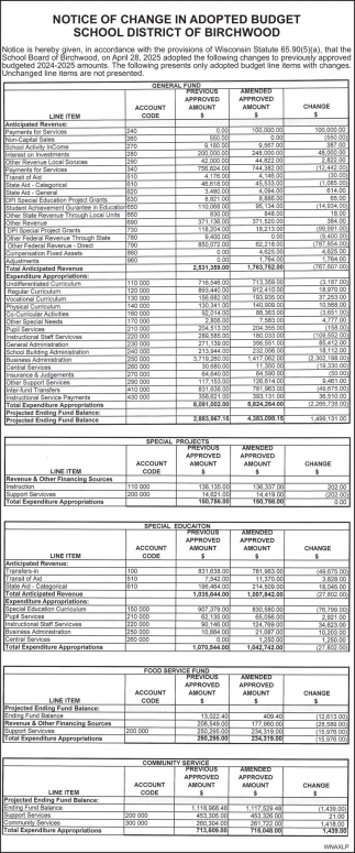 May 06, 2025. School District Of Birchwood Public Notice Ads from Rice Lake Chronotype