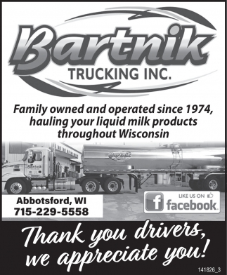 Sep 18, 2025. Bartnik Trucking Inc. Transport Ads from Price County Review