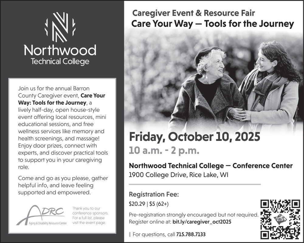 Oct 01, 2025. Northwood Technical College Events Ads from Rice Lake Chronotype