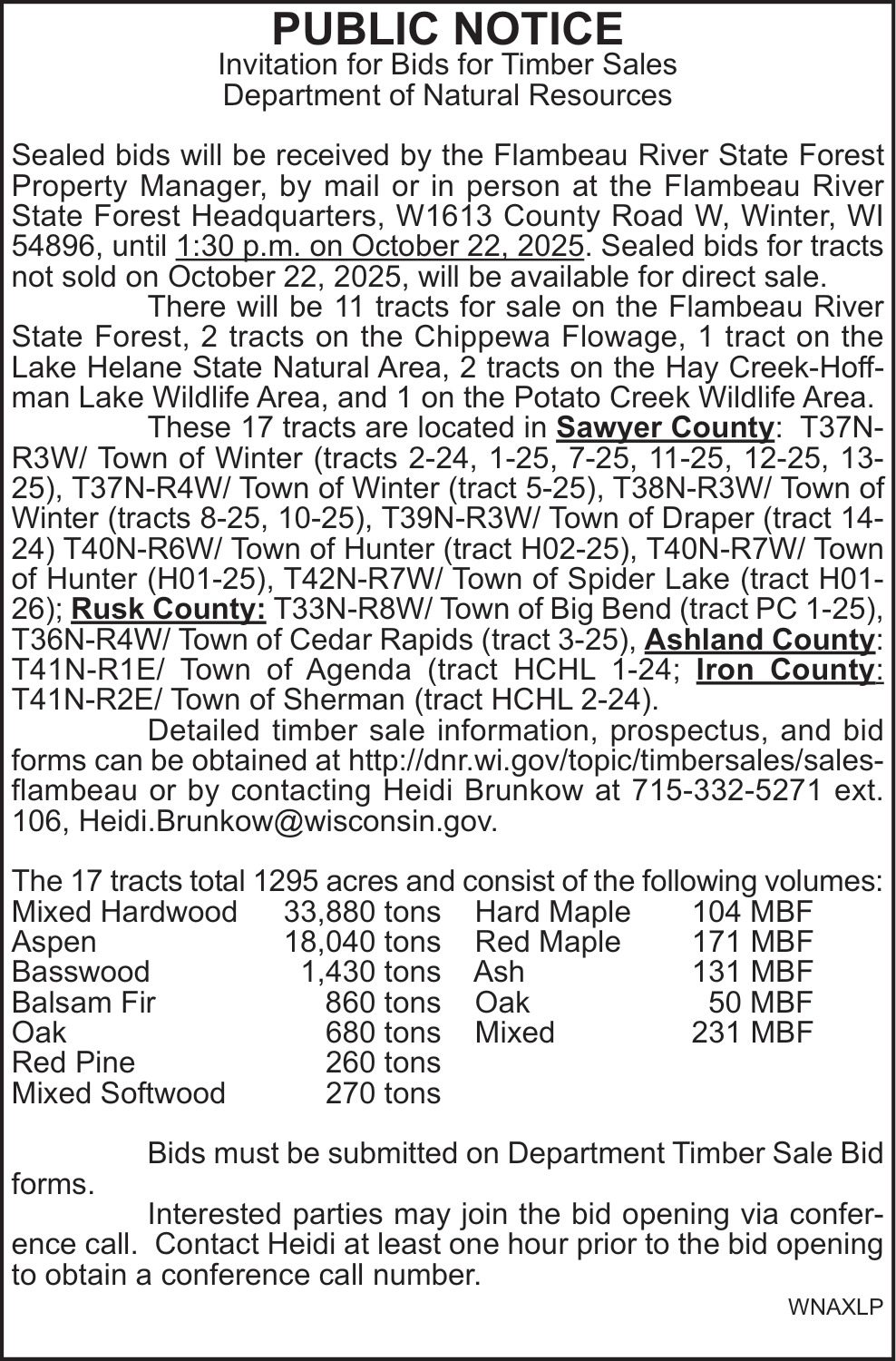 Oct 01, 2025. Flambeau River State Forest Public Notice Ads from Sawyer County Record