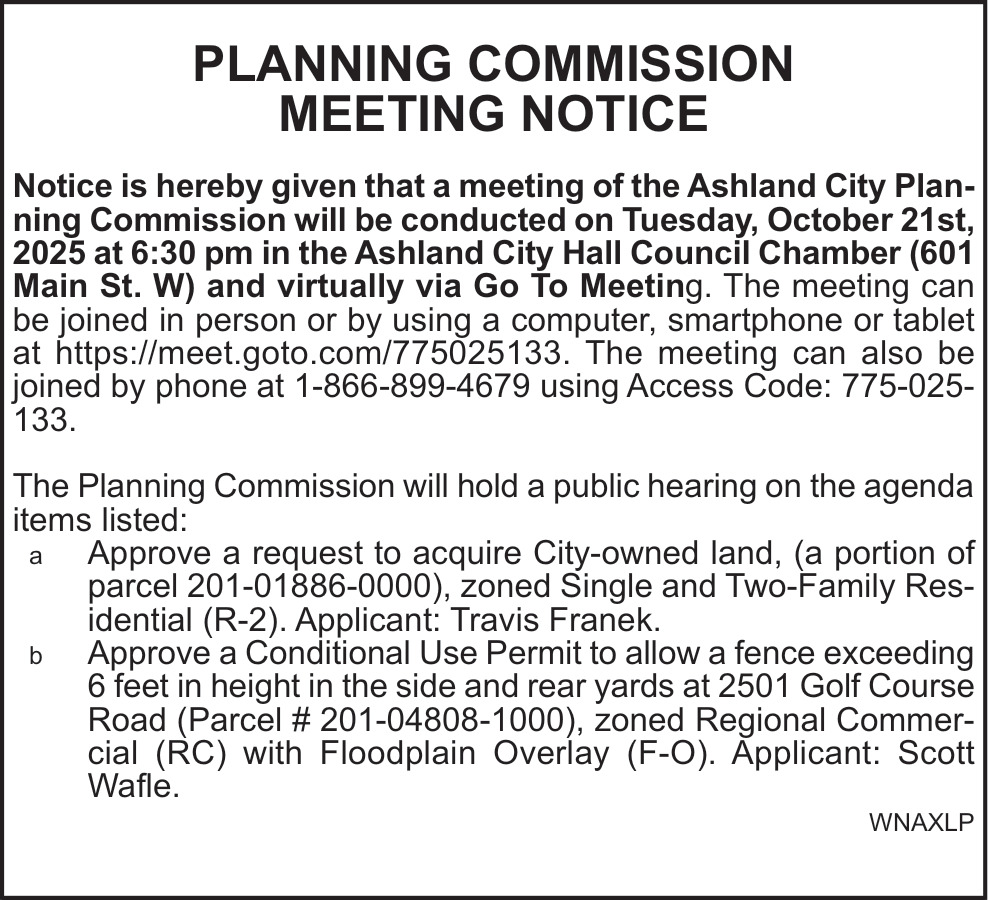 Oct 02, 2025. City Of Ashland Public Notice Ads from Ashland Daily Press