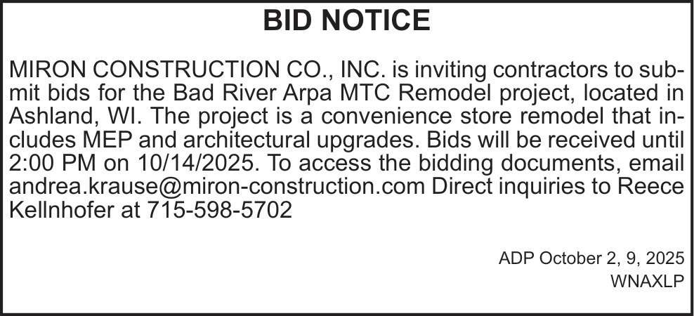Oct 02, 2025. Miron Construction Co., Inc. Construction Ads from Ashland Daily Press