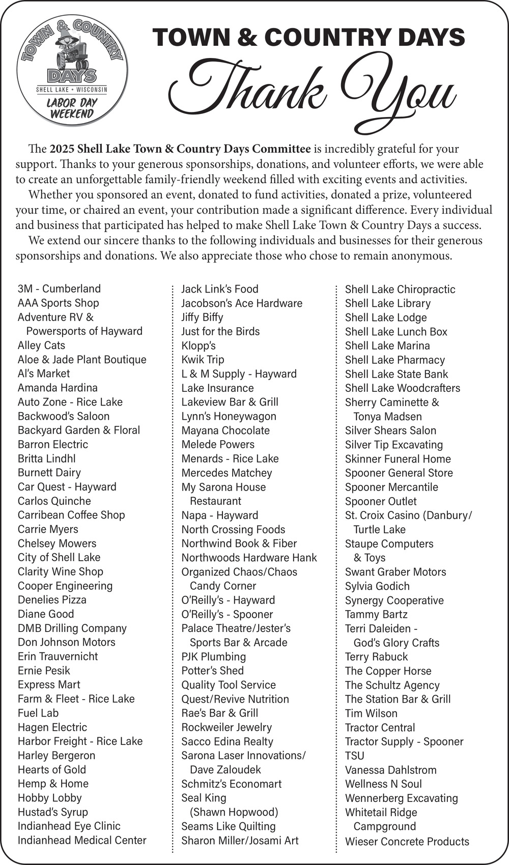 Ads for 46th Annual Town & Country Days in Shell Lake, WI