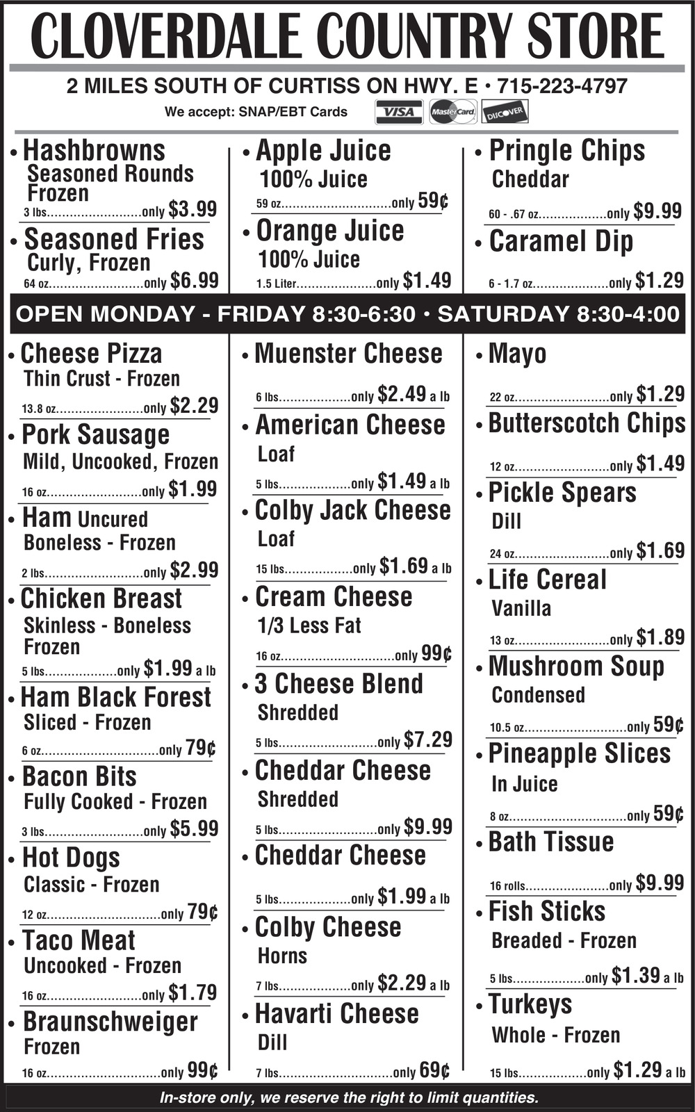 Oct 04, 2025. Cloverdale Country Store Grocery Stores & Markets Ads from Ashland Daily Press