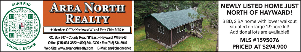 Oct 08, 2025. Area North Realty Real Estate Ads from Sawyer County Record