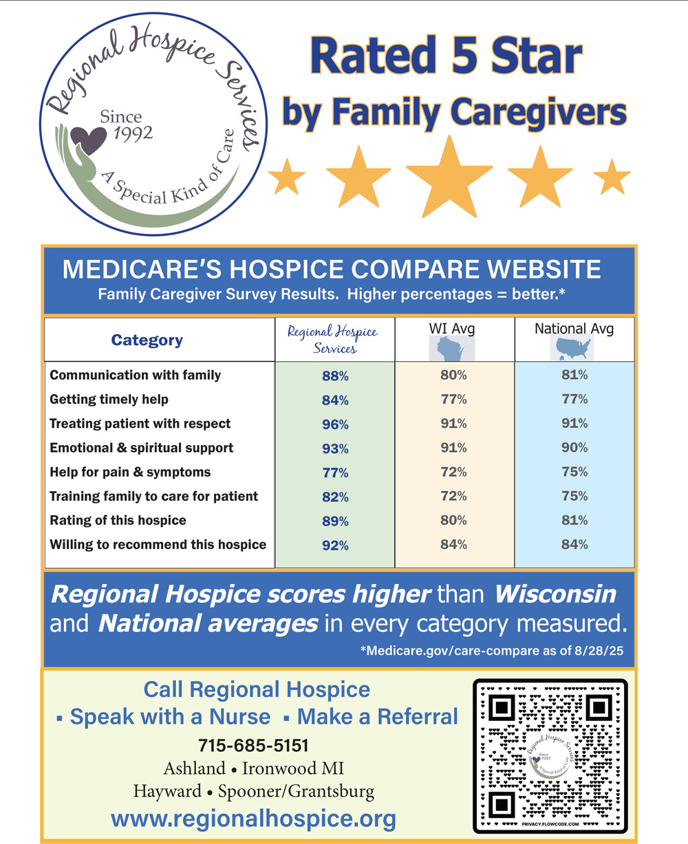 Oct 09, 2025. Regional Hospice Services Senior Living Ads from Spooner Advocate
