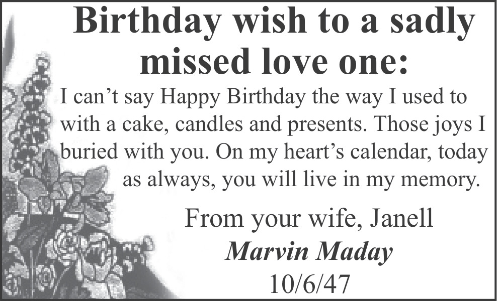 Oct 09, 2025. Birthdays Misc Ads from Ashland Daily Press