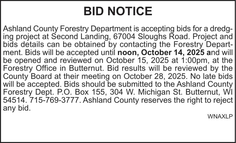 Oct 09, 2025. Ashland County Forestry Department Government Ads from Ashland Daily Press