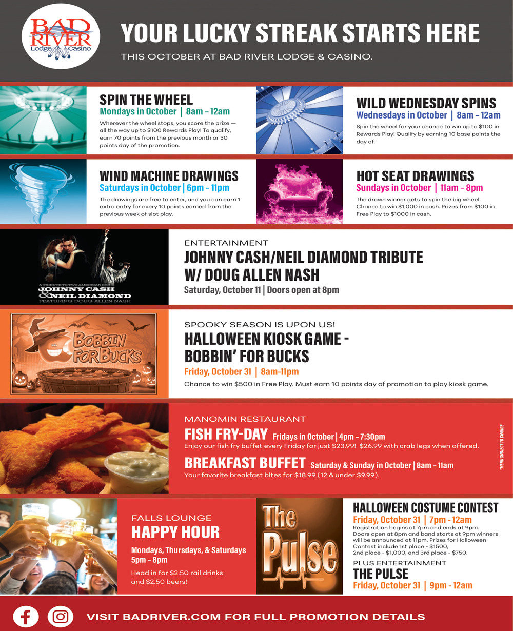 Oct 09, 2025. Bad River Lodge & Casino Hotel & Casino Ads from Ashland Daily Press