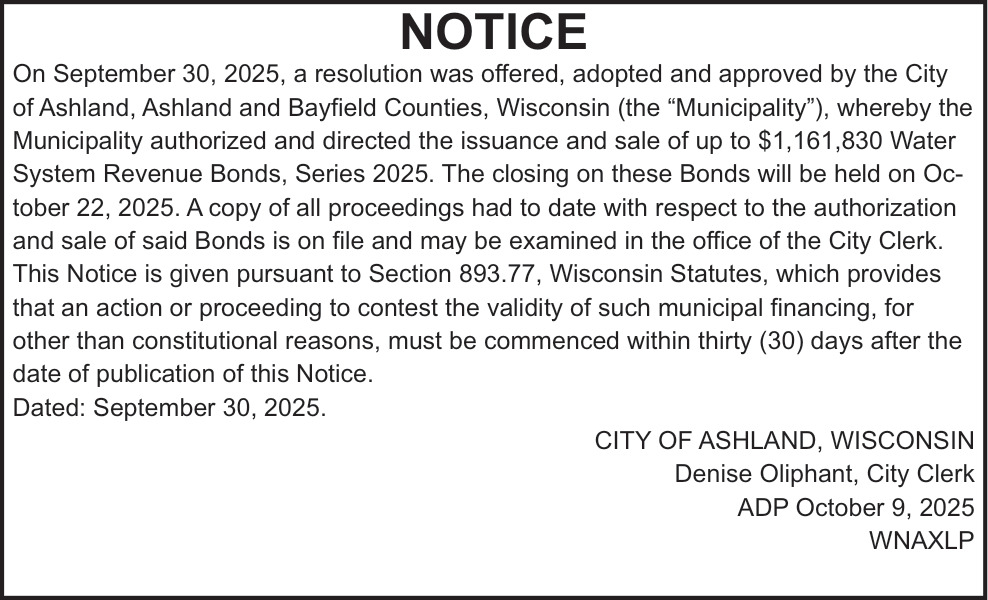 Oct 09, 2025. City Of Ashland Public Notice Ads from Ashland Daily Press