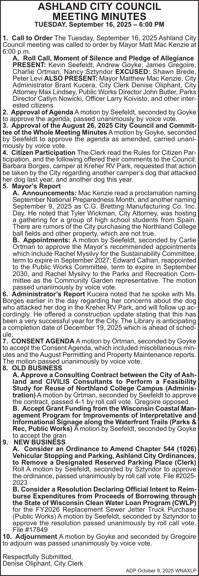 Oct 09, 2025. City Of Ashland Public Notice Ads from Ashland Daily Press