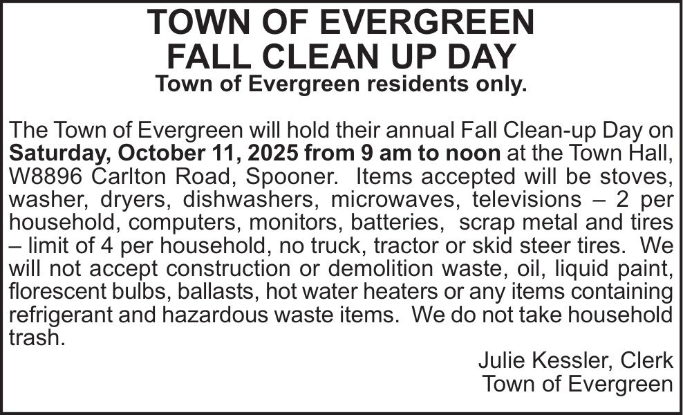 Oct 10, 2025. Town Of Evergreen Public Notice Ads from Spooner Advocate