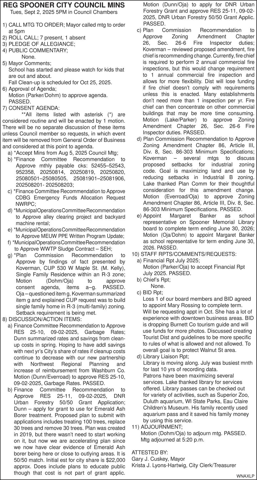 Oct 16, 2025. City of Spooner Public Notice Ads from Spooner Advocate