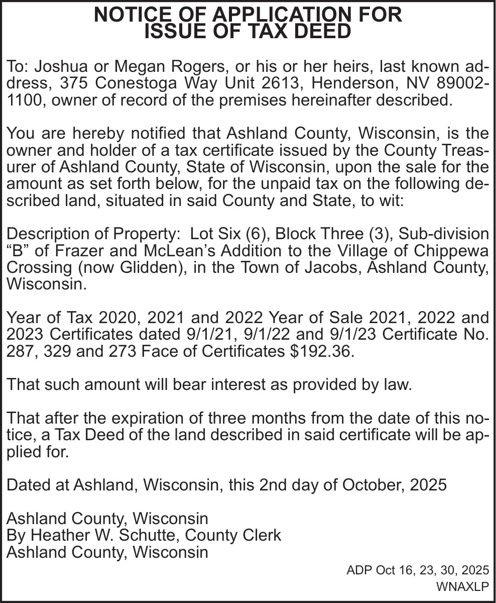 Oct 16, 2025. Ashland County Government Ads from Ashland Daily Press