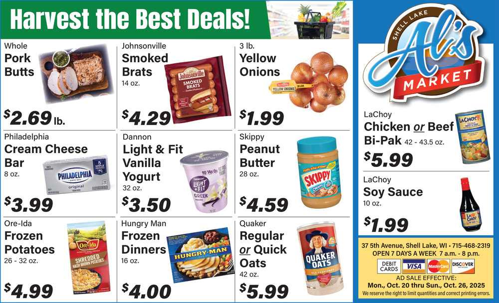 Oct 17, 2025. Al's Market Food & Market Ads from Spooner Advocate