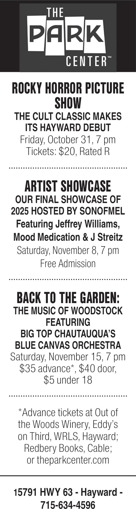 Oct 29, 2025. The Park Center Shows & Theater Ads from Sawyer County Record