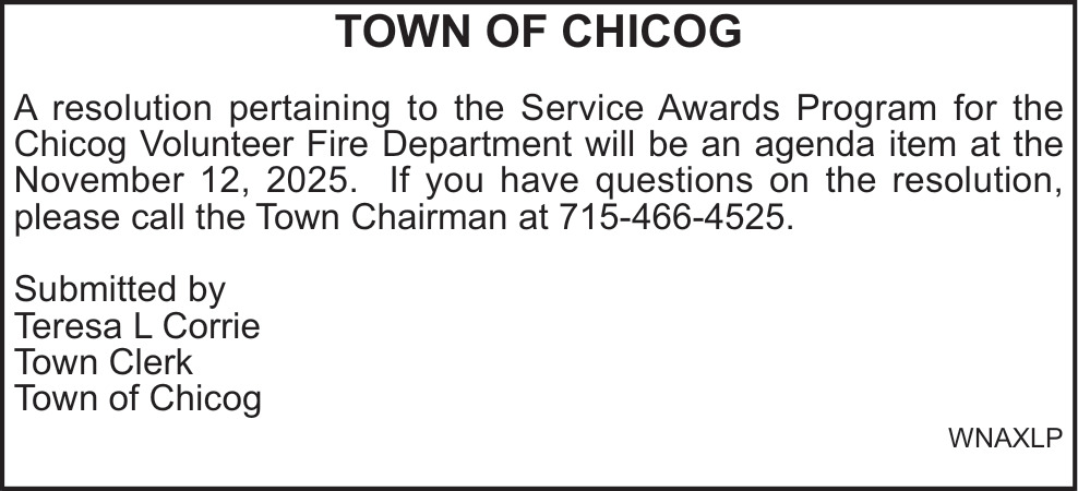 Oct 30, 2025. Town of Chicog Public Notice Ads from Spooner Advocate
