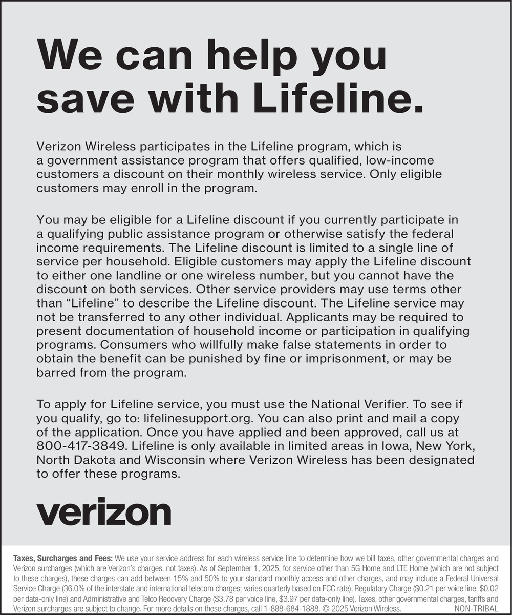 Nov 01, 2025. Verizon Wireless Telecom Ads from Ashland Daily Press