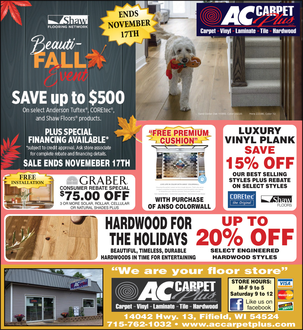 Ads for AC Carpet Plus in Fifield, WI