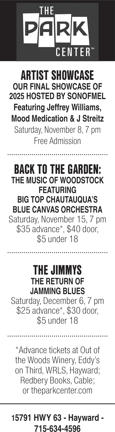 Nov 05, 2025. The Park Center Shows & Theater Ads from Spooner Advocate