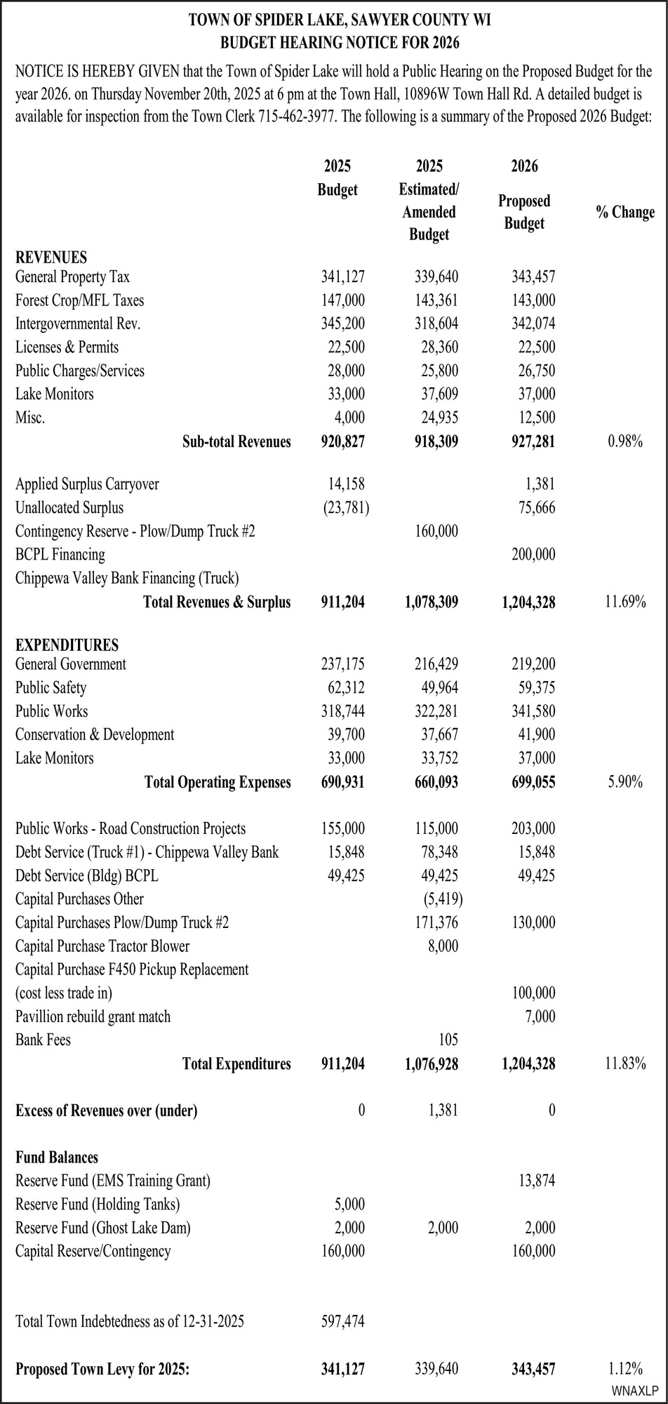 Nov 05, 2025. Town of Spider Lake Public Notice Ads from Sawyer County Record