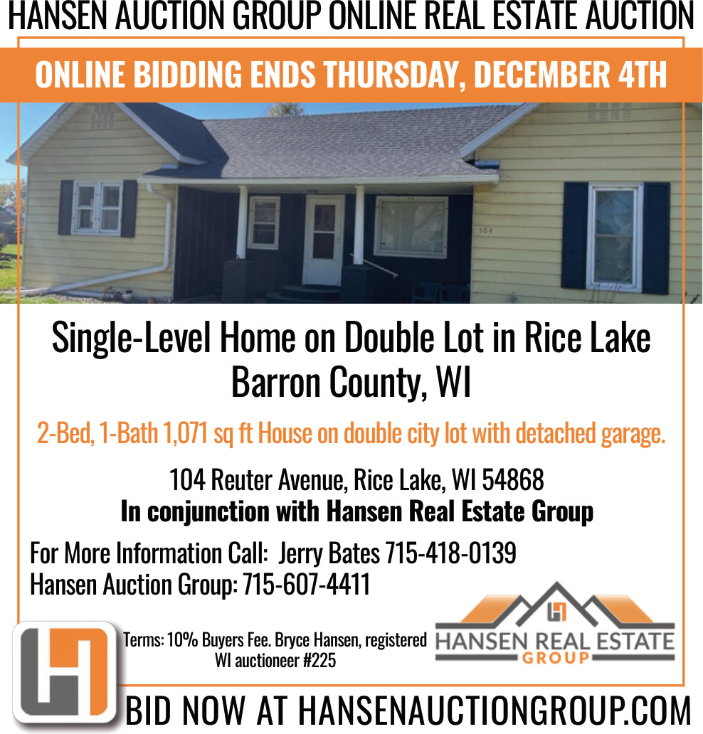 Nov 05, 2025. Hansen Auction Group Auctions Ads from Rice Lake Chronotype
