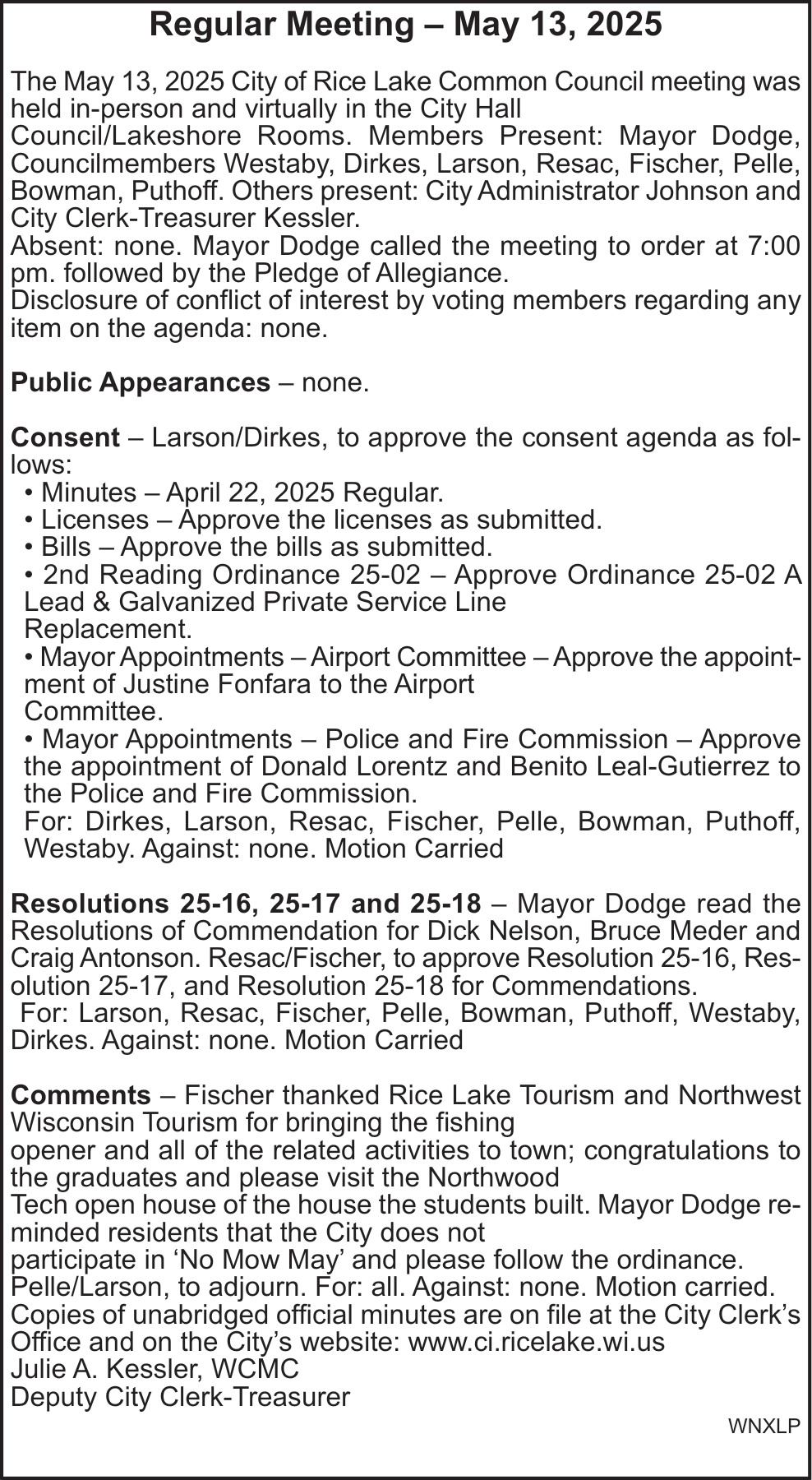 Nov 05, 2025. City of Rice Lake Public Notice Ads from Rice Lake Chronotype