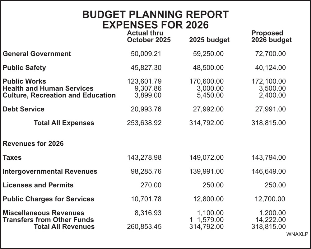 Nov 06, 2025. Town of Spirit Public Notice Ads from Price County Review