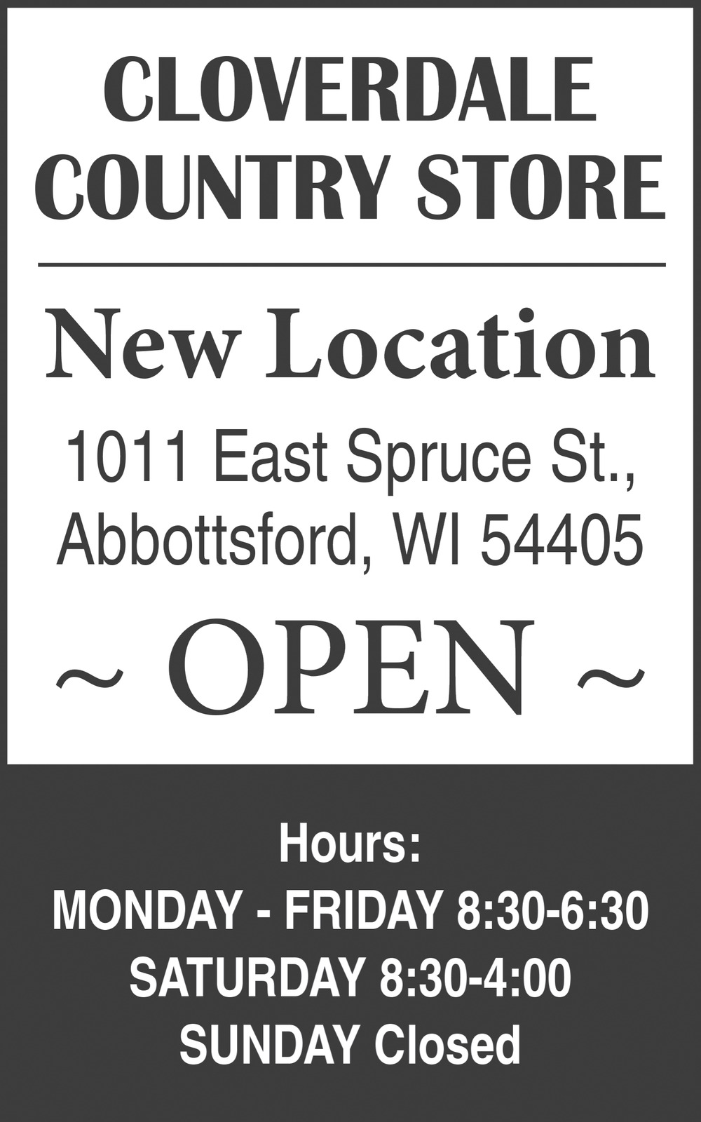 Ads for Cloverdale Country Store in Curtis, WI