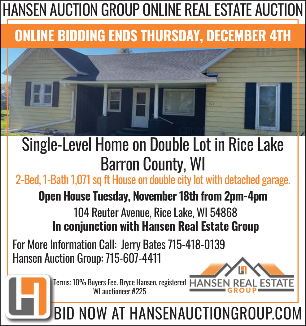 Nov 12, 2025. Hansen Auction Group Auctions Ads from Rice Lake Chronotype