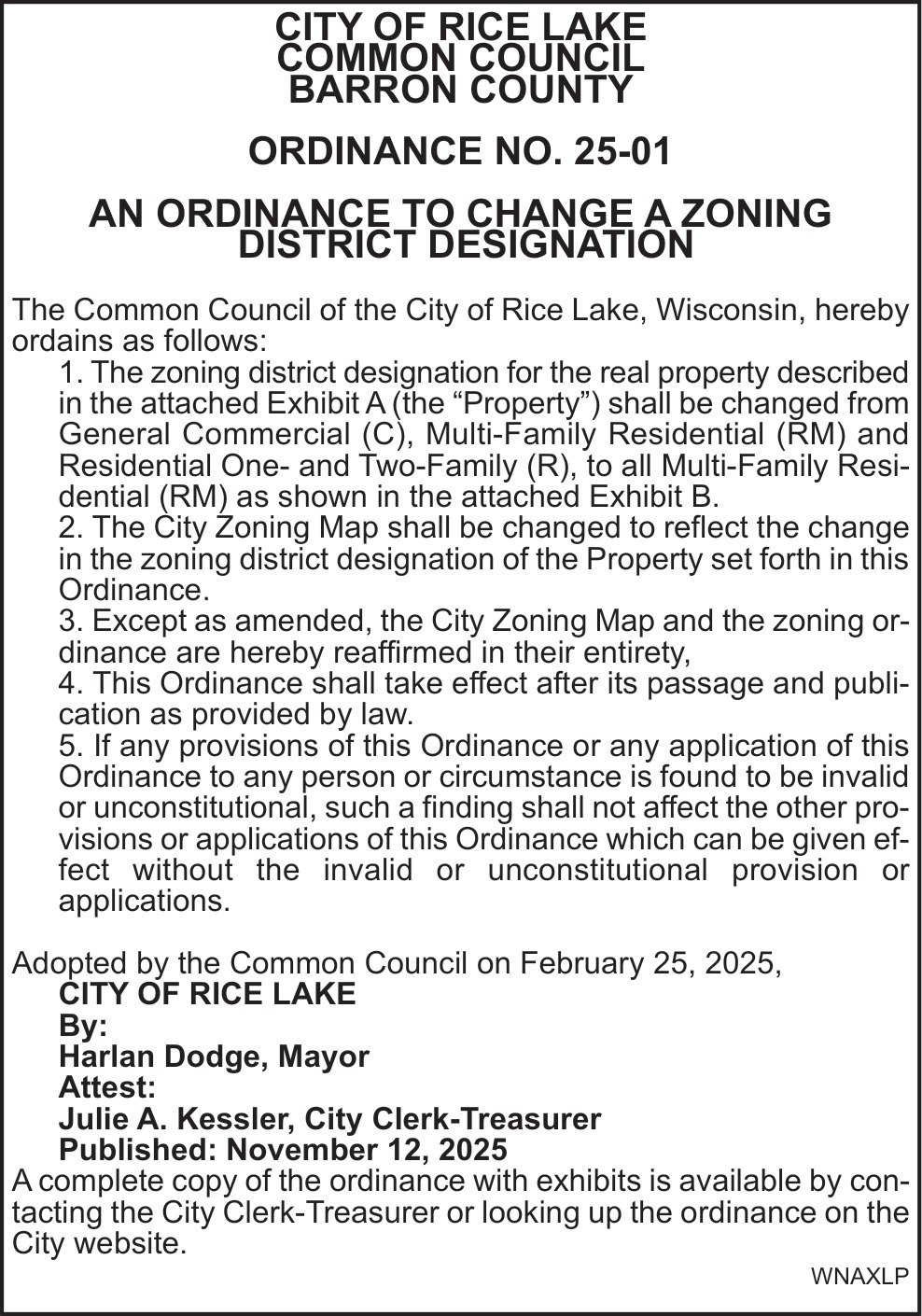 Nov 12, 2025. City of Rice Lake Public Notice Ads from Rice Lake Chronotype