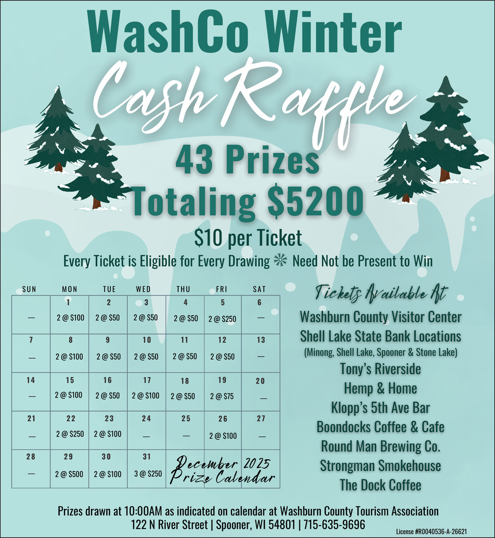 Nov 13, 2025. Washburn County Tourism Association Public Notice Ads from Spooner Advocate
