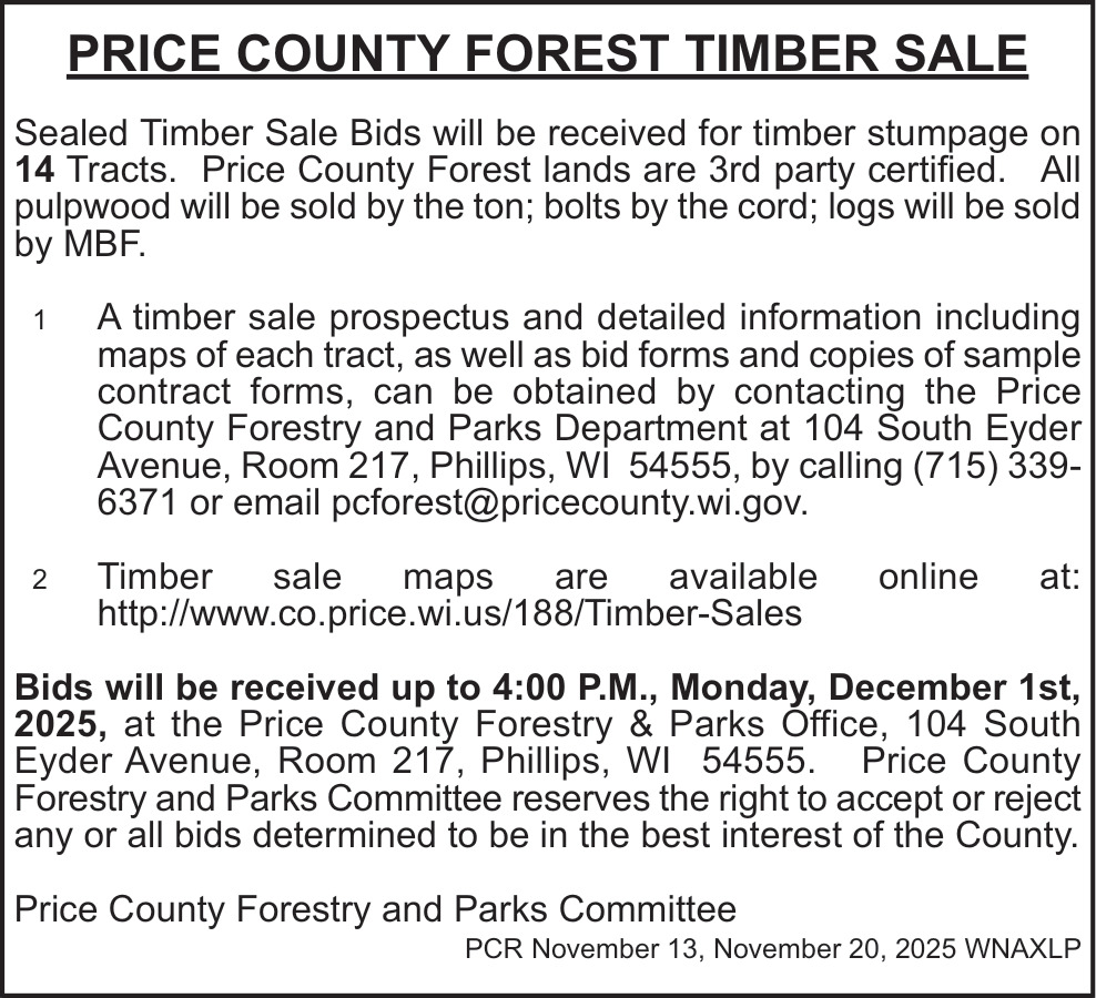 Nov 13, 2025. Price County Public Notice Ads from Price County Review
