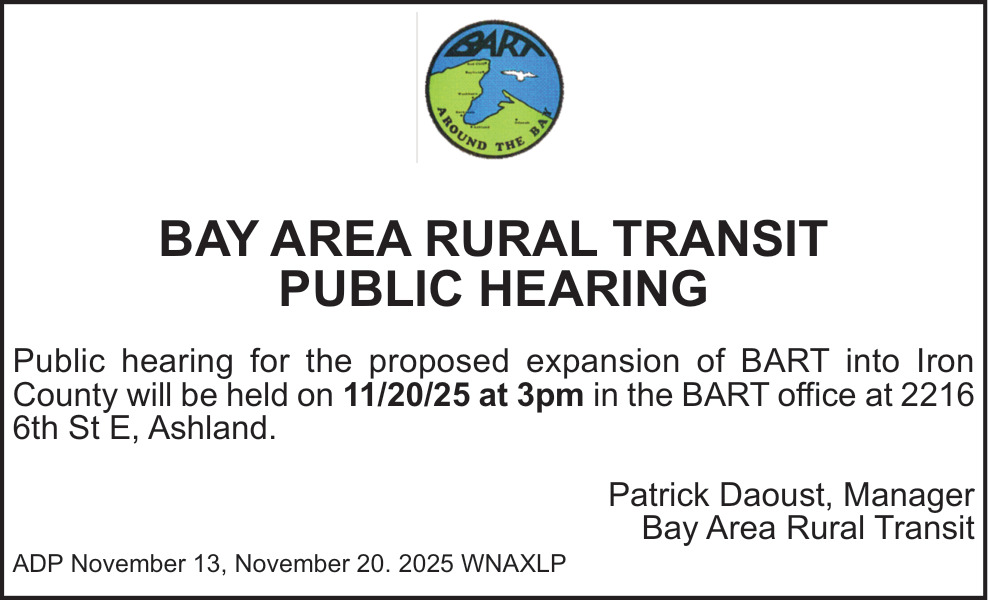 Ads for Bay Area Rural Transit in Ashland, WI