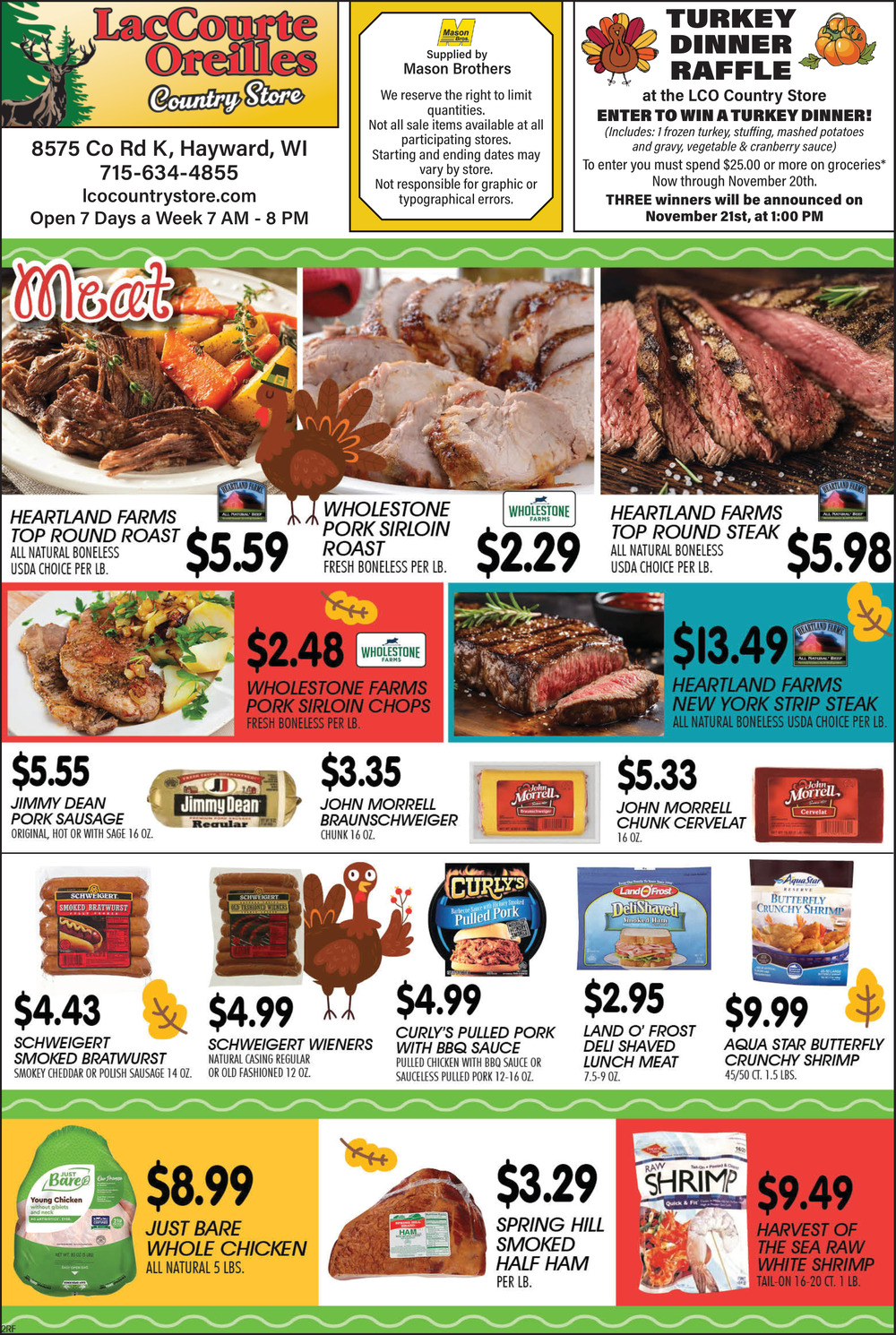 Nov 19, 2025. LCO Country Store Groceries & Markets Ads from Sawyer County Record