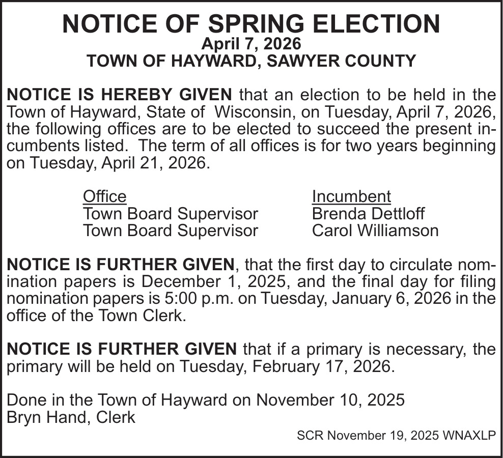Nov 19, 2025. Town of Hayward Public Notice Ads from Sawyer County Record