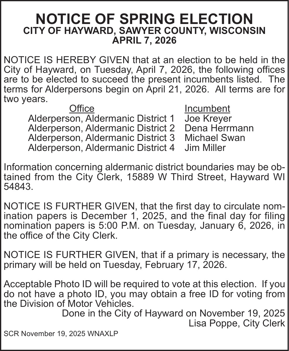 Nov 19, 2025. City of Hayward Public Notice Ads from Sawyer County Record